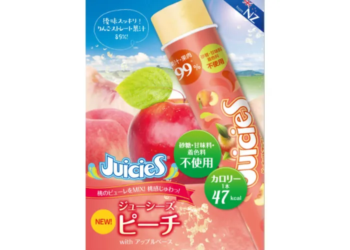 1本当たり果汁99%以上、砂糖・甘味料・着色料不使用。ニュージーランドで愛されている、原材料にこだわったシンプル素材のフルーツアイスです。 ピーチはりんごのストレート果汁をベースにピーチピューレをミックスしたフレーバーです。