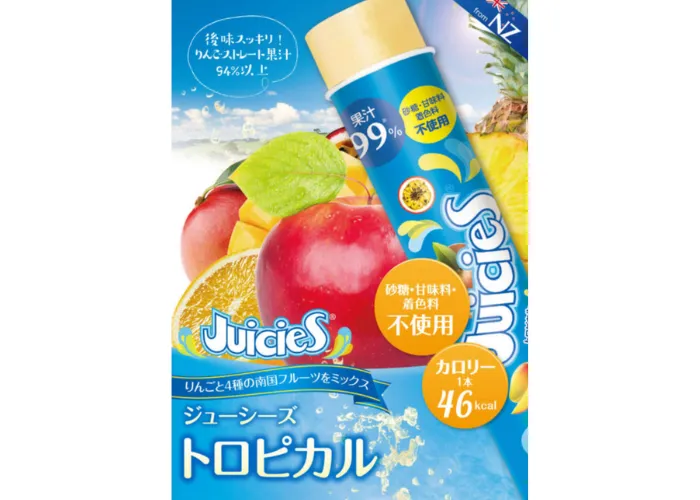 1本当たり果汁99%以上、砂糖・甘味料・着色料不使用。ニュージーランドで愛されている、原材料にこだわったシンプル素材のフルーツアイスです。 トロピカルはりんごのストレート果汁をベースにオレンジ、パインアップル、パッションフルーツ、りんご、マンゴーの還元果汁をミックスしたフレーバーです。