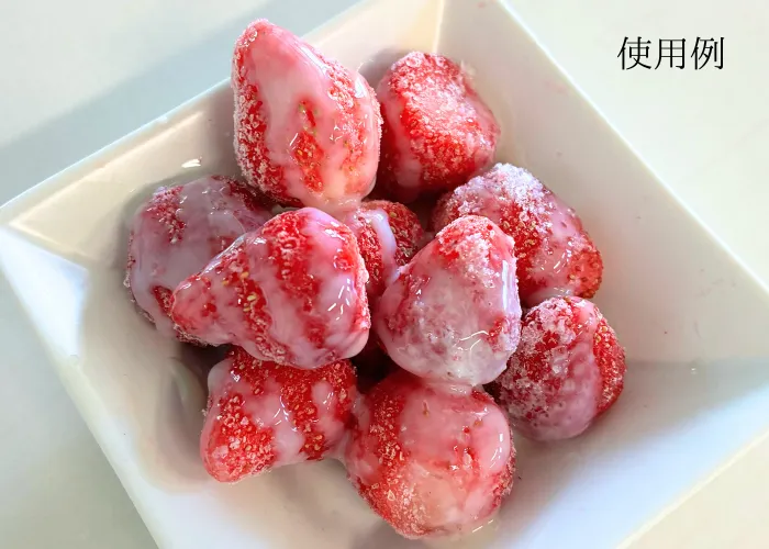 | 使用方法/注意事項 | ※一括表示が変更になることがございます。最新の情報は商品の一括表示をご確認ください。 <使用方法> 冷凍のまま甘酸っぱいイチゴを堪能できます。また練乳などをかけて食べるのもおススメです。 冷凍のまま削りいちごとしてかき氷の上にかけるものおススメです。 <注意事項> 解凍してしまうとドリップが出てしまい、元には戻りません。開封後は早めにお召し上げりください。 |