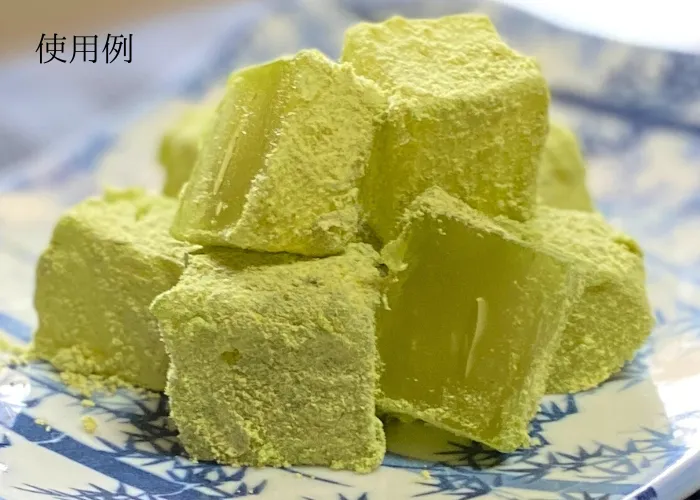うぐいす粉に風味豊かな抹茶を加えました。水分を含むと鮮やかになります。
