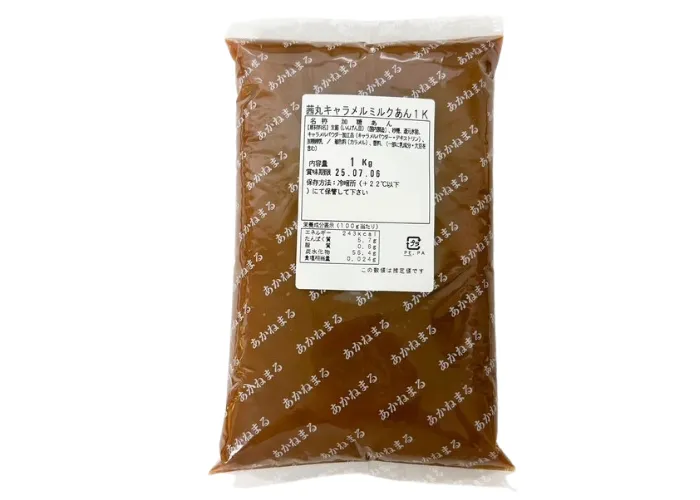 原材料名 | 生餡(いんげん豆)(国内製造)、砂糖、還元水飴、キャラメルパウダー加工品(キャラメルパウダー・デキストリン)、加糖練乳/着色料(カラメル)、香料、(一部に乳成分・大豆を含む) |