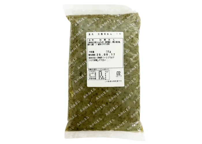 原材料名 | 生餡(いんげん豆)(国内製造)、砂糖、還元水飴、緑茶(玉露)/着色料(クチナシ色素) |