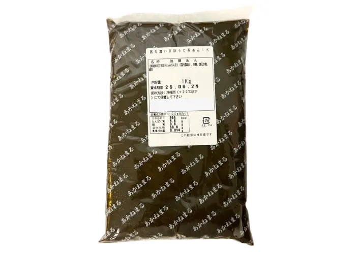 | 原材料名 | 生餡(いんげん豆)(国内製造)、砂糖、還元水飴、緑茶 |