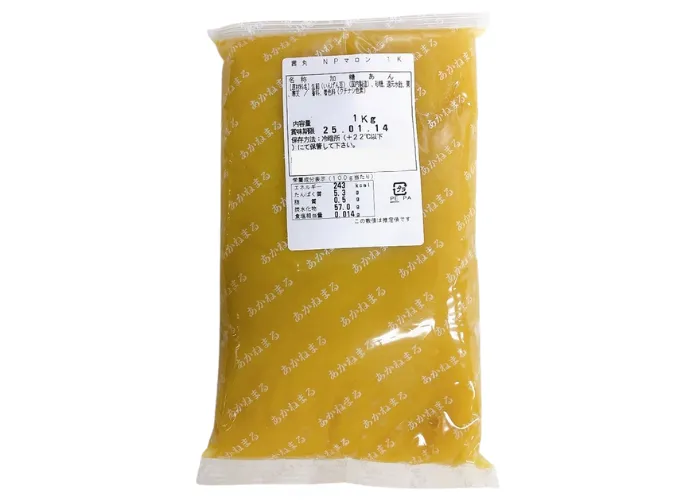 原材料名 | 生餡(いんげん豆)(国内製造)、砂糖、還元水飴、栗、寒天/香料、着色料(クチナシ色素) |