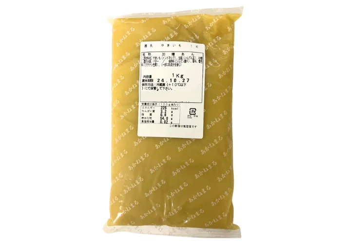 原材料名 | やきいも(インドネシア)、生餡(いんげん豆)、砂糖、還元水飴、バター/保存料(ソルビン酸K)、香料、着色料(クチナシ色素)、(一部に乳成分を含む) |