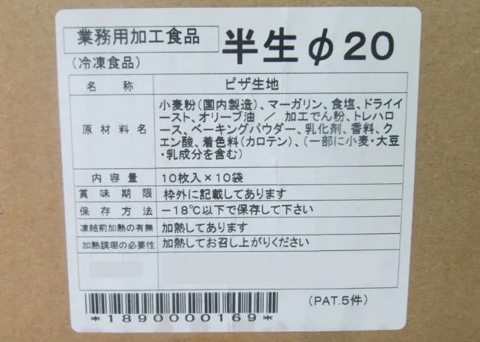 | 使用方法/注意事項 | ※一括表示が変更になることがございます。最新の情報は商品の一括表示をご確認ください。 <使用方法> 1枚毎に剥離シートがありますので凍結状態で必要枚数取り出します。1枚の場合、そのままソース、チーズ等お好みのトッピングの後、250℃前後に温めたオーブンで4分~5分程度焼成して下さい。(オーブン機種により温度、時間は前後します。) <注意事項> 品質が変わる場合がありますので一度解凍された商品の再凍結は不可となります。 開封後はラップ等で密閉し乾燥しない様にして下さい。 |
