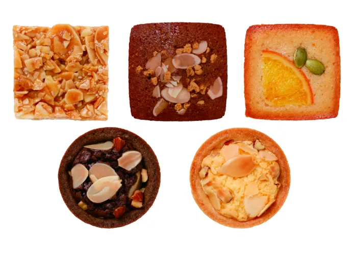 アーモンドならではの食感や香ばしさが際立つ、定番の焼き菓子を詰め合わせました。【フィナンシェ】こだわりのフィナンシェ生地にオレンジやアーモンドなどをトッピングして香ばしく焼き上げました。【フロランタン】軽い食感のヌガーとホロホロなクッキー生地がマッチした食べやすいフロランタン。【ブラウニータルト】パートシュクレにしっとり食感のブラウニー生地を流しこみ、食感の異なる2種類のアーモンドをトッピングして焼き上げました。