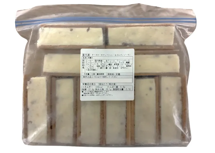 | 原材料名 | クッキー(国内製造)、生クリーム、クリームチーズ、アングレーズソース、サワークリーム、クルミ、蜂蜜、ゴルゴンゾーラ、ゼラチン/香料、安定剤(ローカストビーンガム)、粘料(加工デンプン)、グリシン、保存料(しらこ) |