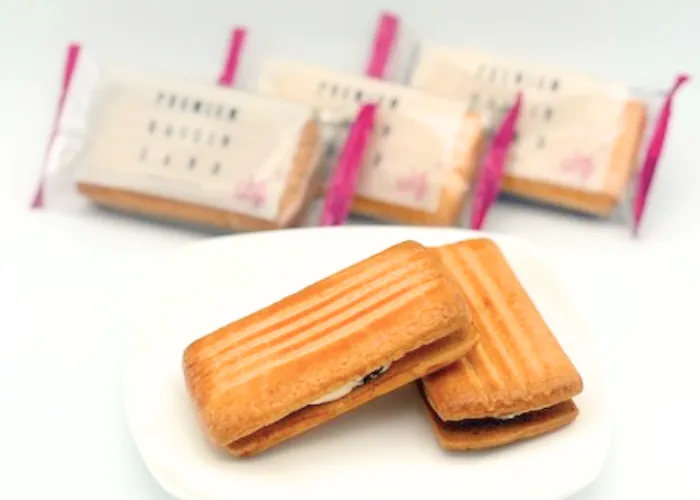 しっとりと焼き上げたサブレに、ラム酒にじっくりと漬け込んだ大粒のレーズンとホワイトチョコレートを練り込んだ 口どけなめらかなガナッシュクリームを贅沢にサンドしました。