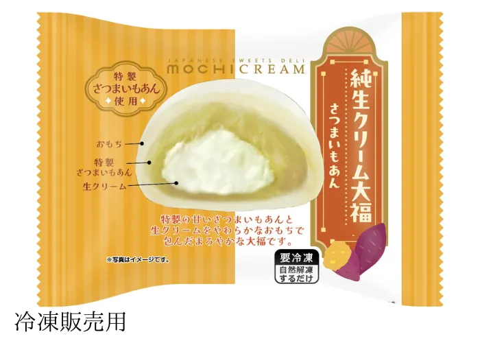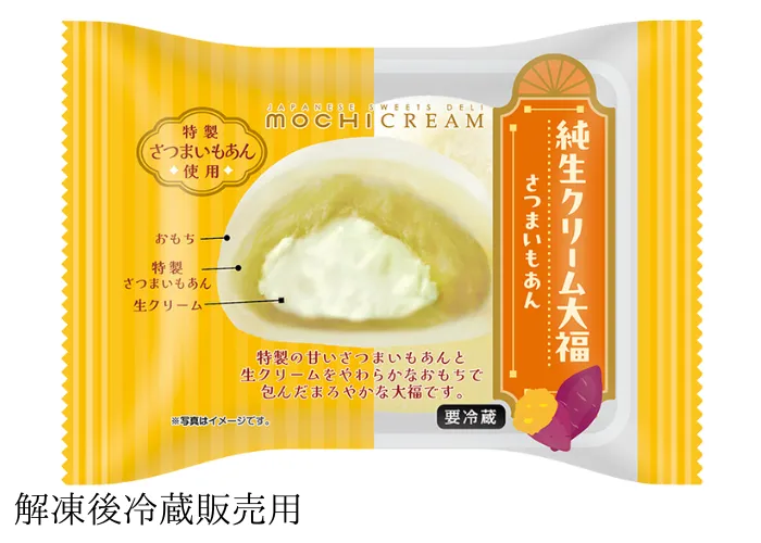 やわらかなおもちで特製さつまいもあんと生クリームを包んだ限定商品です。
