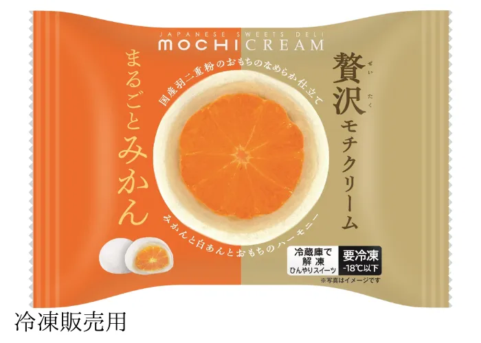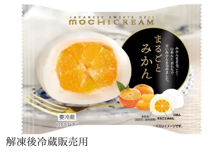ふわふわなおもちの中に果汁たっぷりな甘いみかんがまるごと入った大福です。