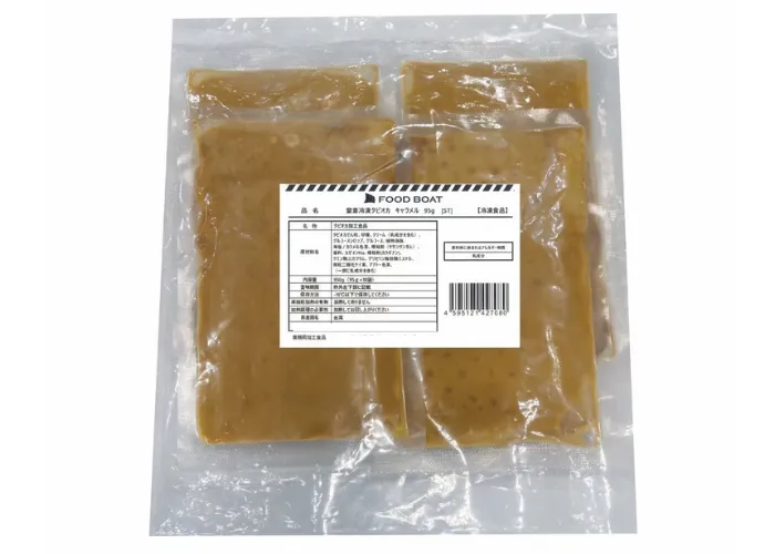 個食パックの中にタピオカとキャラメルが詰め込まれていて、レンジで解凍し、氷と牛乳を加えるだけで本格的なタピオカドリンクが出来上がります。