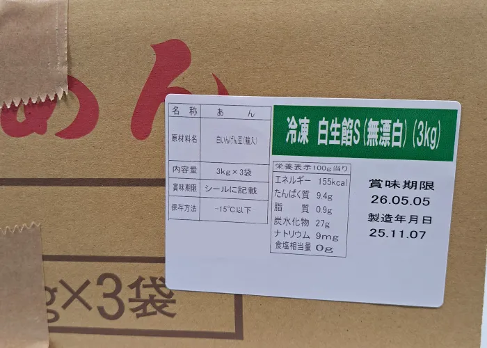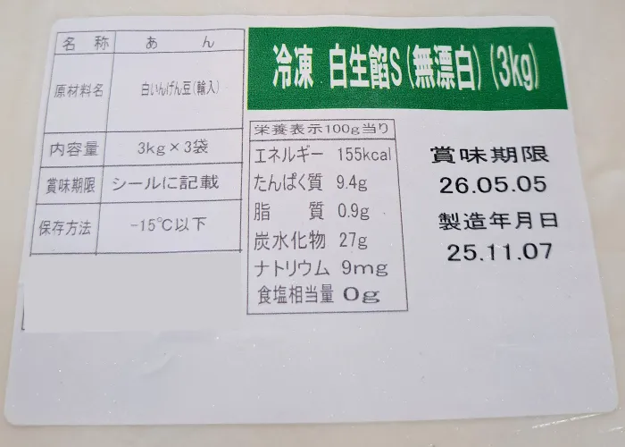 | 原材料名 | 白生あん(白いんげん豆) |