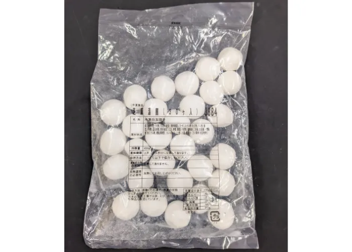 | 原材料名 | 皮〔ミックス粉(もち粉、でん粉、食塩)(国内製造)、ラード、ミックス粉(白玉粉、でん粉、食塩)、砂糖、還元水飴、粉末油脂〕、ごま、砂糖、豚脂、小麦粉、植物油(ごま油、大豆油)/増粘剤(加工でん粉、増粘多糖類)、トレハロース、(一部に小麦・乳成分・ごま・豚肉・大豆を含む) |