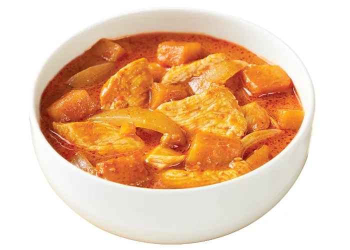 | 原材料名 | 鶏肉、ココナッツミルク、マッサマンカレーペースト、砂糖、醤油、タマリンドペースト、ラー油、タマネギ、でん粉、落花生(一部に小麦、大豆、鶏肉、落花生、えびを含む) |