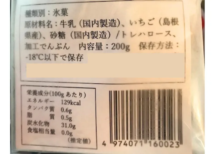 | 原材料名 | 牛乳(国内製造)・いちご(島根県産)・砂糖(国内製造)/トレハロース・加工でんぷん 種類別:氷菓 |