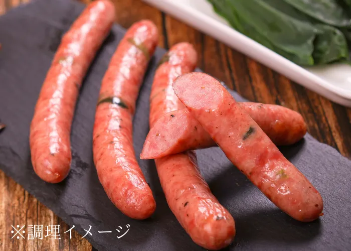 旨味のある麦豚に特製ブレンドのスパイスを使用。さらに国産の行者にんにくを天然羊腸に詰めて弾けるような食感に仕上げました。桜のチップで燻した風味の良いソーセージです。
