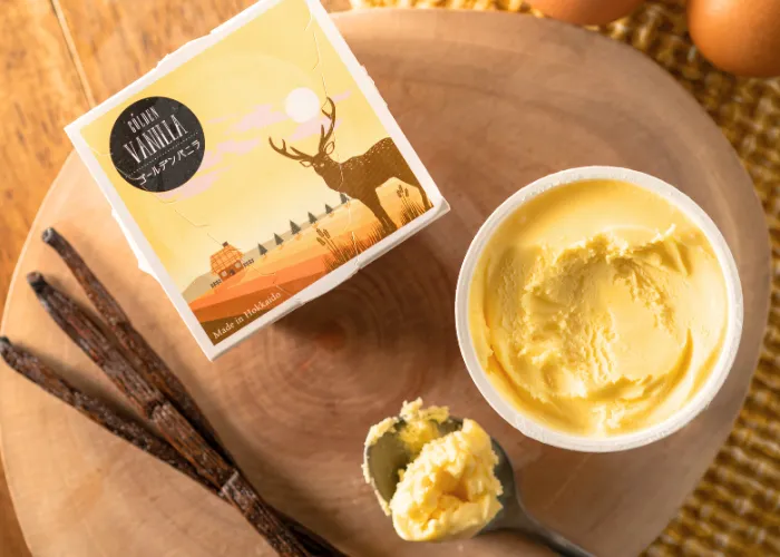 北海道産の生乳を100%使用し、最高品質のバニラエッセンスと、卵本来のおいしさにこだわり原材料を厳選して製造した加糖卵黄を使用した、コクのある旨みのアイスクリームです。