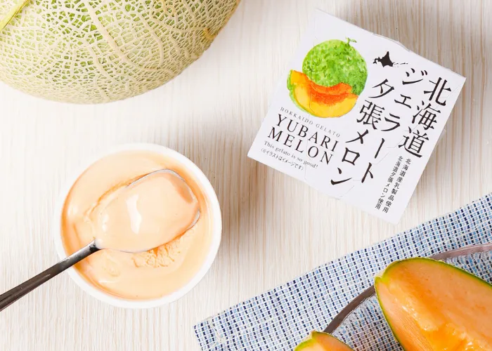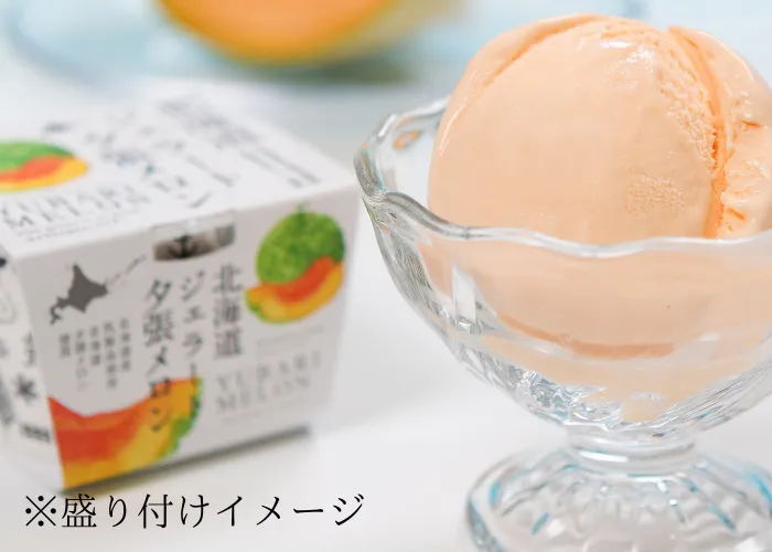 メロンの風味豊かで、なめらかな食感のシャーベット。北海道夕張産のメロン果汁を使用し、メロン本来の味を楽しめます。