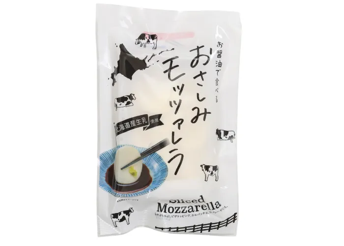 お刺身のようにわさび醤油で食べる、メダル型のモッツァレラチーズです。カルパッチョやカプレーゼ、しゃぶしゃぶやトーストのトッピングにもおすすめです。
