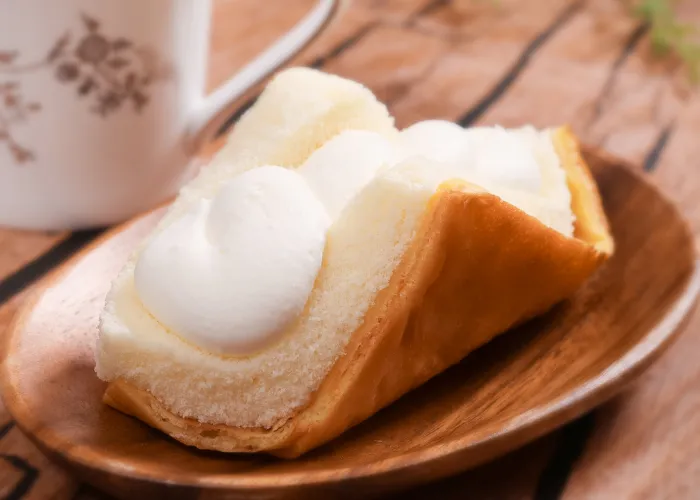 王道スイーツのシュークリームとオムレットがひとつになりました!スポンジ生地とシュー生地の間にもたっぷりクリームをサンドしました。