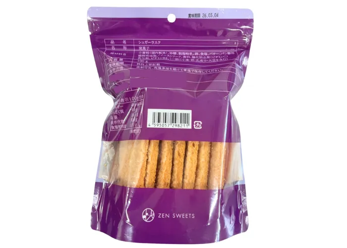 ホテルブレッドにフレッシュバターとグラニュー糖をたっぷりまぶしたサクサクとした食感のシュガーラスクです。