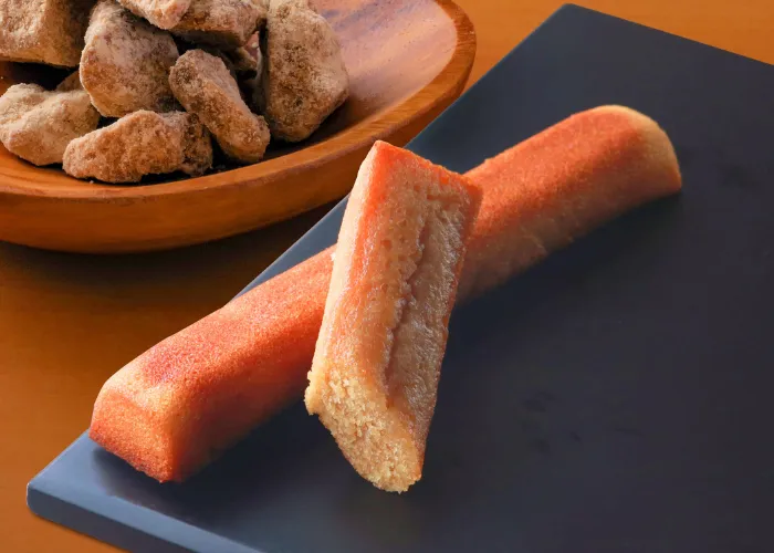 国産黒糖のコクと風味を米油を使って存分に引き出し焼きあげた、超しっとり食感のスティックフィナンシェです。黒糖のうち国産黒糖を96%使用。