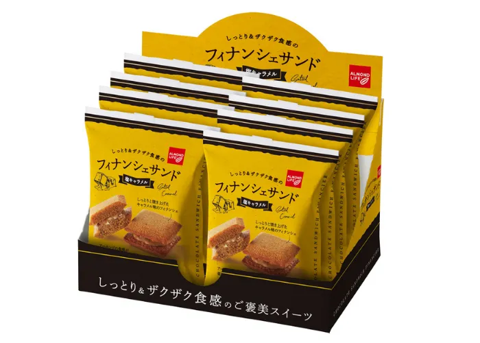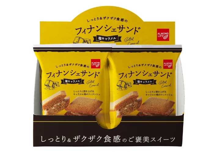 しっとり焼き上げたキャラメル味のフィナンシェとザクザク食感のキャラメルチョコレートとのコントラストが心地よい、ちょっとひといきご褒美スイーツ。