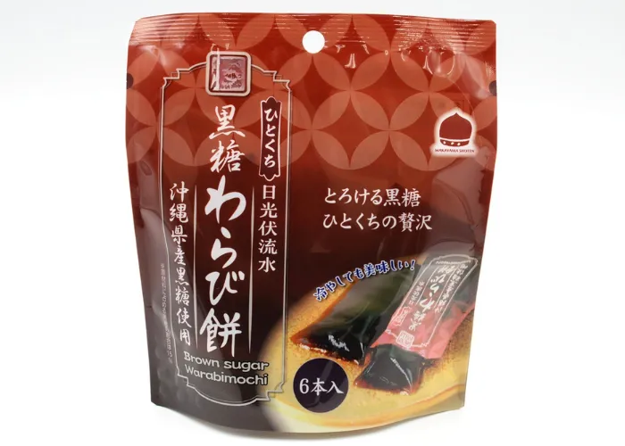 もちもち、つるん。新感覚の黒糖わらび餅。食べやすい一口サイズのスティックが6個、スタンドパック袋に入っています。沖縄産黒糖使用。
