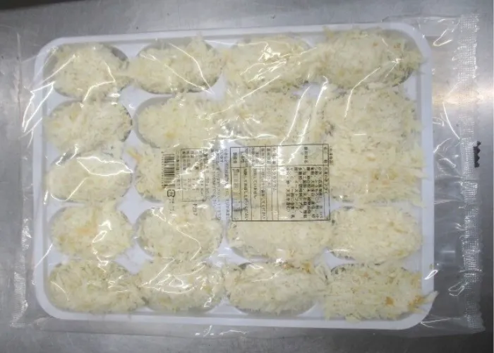 | 原材料名 | かき(広島県産)、衣(パン粉、とうもろこし粉、小麦粉、大豆蛋白、食塩、砂糖、卵白粉末、植物油脂)/加工澱粉、乳化剤、増粘多糖類、調味料(アミノ酸)、イーストフード、V.C、(一部に小麦・乳成分・卵・大豆を含む) |