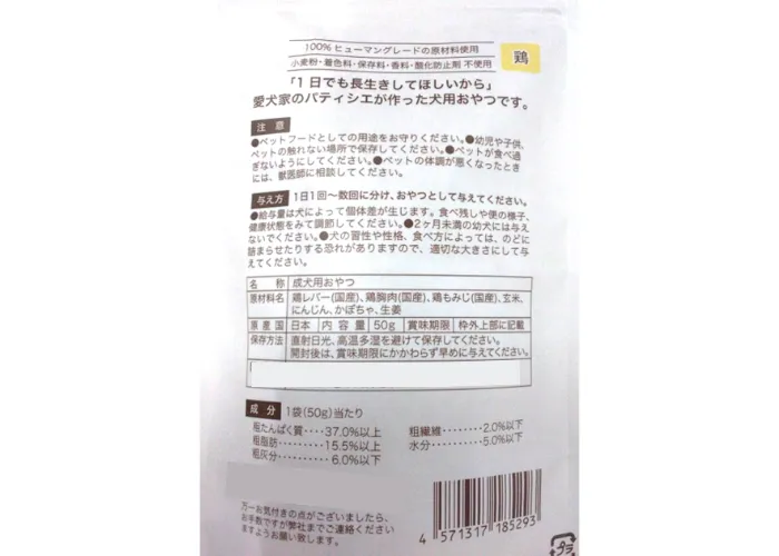 1日でも長生きしてほしいという願いから愛犬家のパティシエが素材にこだわって作った無添加おやつ。飼い主からの支持が強い鶏フレーバー