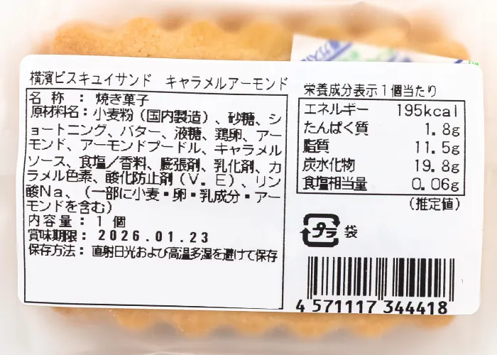 [62] 横濱ビスキュイサンド(キャラメルアーモンド)