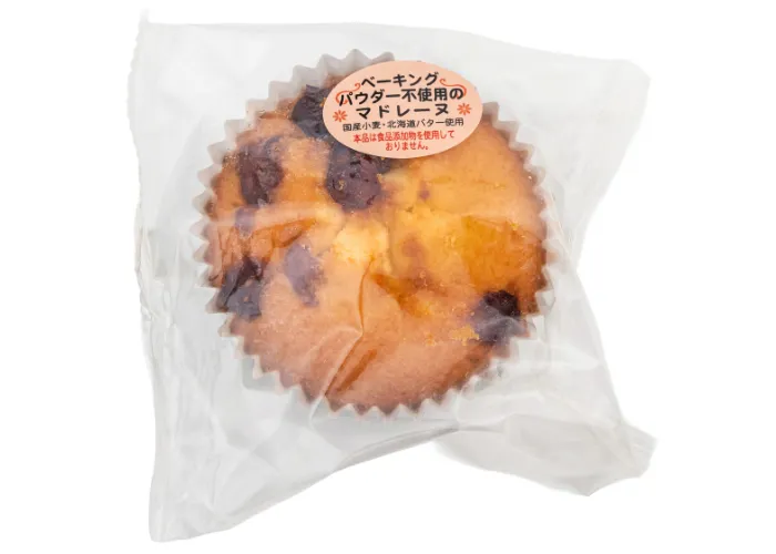 北海道バターを使用して風味豊かに焼き上げました。ベーキングパウダーをはじめ保存料・着色料・香料などの添加物を使用せず原料にこだわったマドレーヌに爽やかな酸味のベリーをトッピングしました。