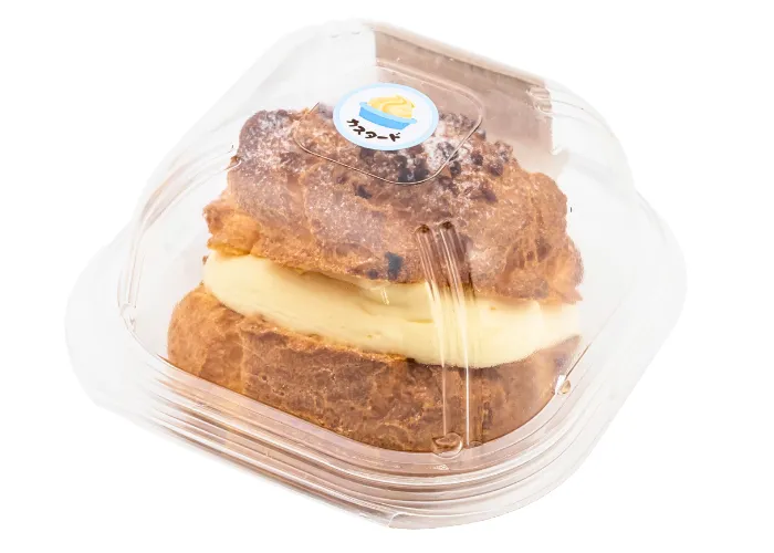 さっくりしたシュー皮にクリームはカスタードクリームとホィップクリームを合わせてオリジナルクリームに仕上げました。カスタードクリームをたっぷり入れたシュークリームの定番です。