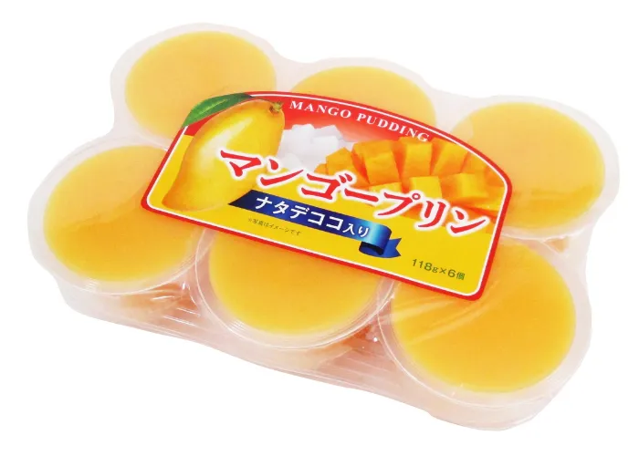 ナタデココが入ったフルーツプリンです。ナタデココの歯ごたえと濃厚で甘酸っぱいマンゴーのハーモニーをお楽しみいただけます。冷蔵庫で冷やしてお召し上がりいただくと、より一層美味しくお召し上がりいただけます。