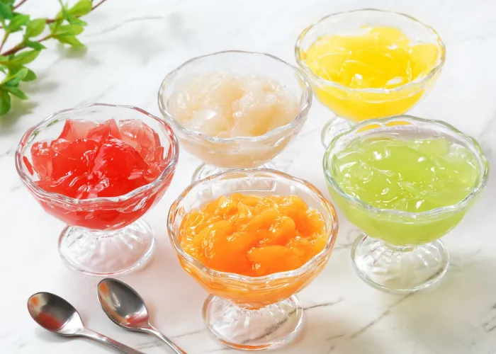 | 栄養成分表示「推定値」 | (1個(125g)当たり)【夕張メロンゼリー】熱量102kcal、たんぱく質0.4g、脂質0g、炭水化物25.4g、食塩相当量0.1g【シャインマスカットゼリー】熱量102kcal、たんぱく質0.1g、脂質0g、炭水化物25.8g、食塩相当量0.1g【白桃ゼリー】熱量84kcal、たんぱく質0.3g、脂質0g、炭水化物21.0g、食塩相当量0.1g【あまおう苺ゼリー】熱量86kcal、たんぱく質0g、脂質0g、炭水化物22.0g、食塩相当量0.2g【ゴールドキウイゼリー】熱量103kcal、たんぱく質0.2g、脂質0.1g、炭水化物26.0g、食塩相当量0.3g |