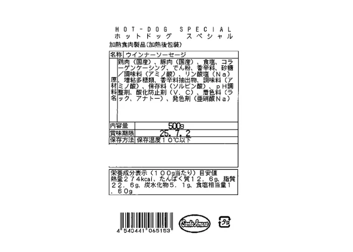 | 使用方法/注意事項 | ※一括表示が変更になることがございます。最新の情報は商品の一括表示をご確認ください。 <使用方法> パンにキャベツ・レタス・チーズ等のお好み品と一緒に挟めば美味しいホットドックの出来上がり。 野菜と一緒に炒めても美味しく召し上がれます。 |