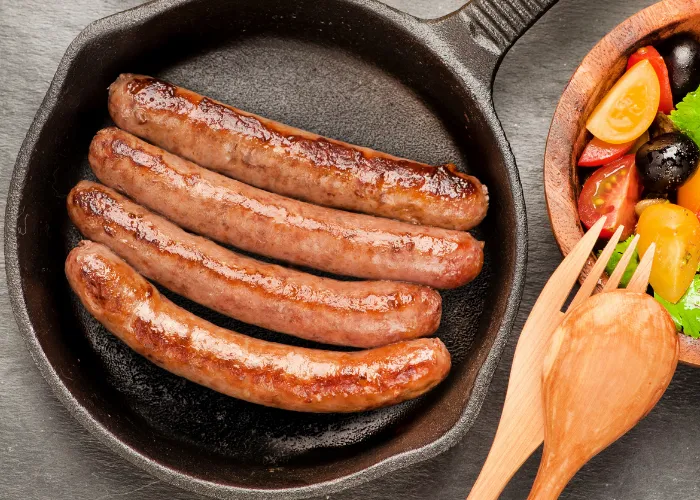 | 使用方法/注意事項 | ※一括表示が変更になることがございます。最新の情報は商品の一括表示をご確認ください。 <使用方法> 1. フライパンを中火で予熱します。(表面加工が施されたフライパンなら油は不要) ソーセージをフライパンに並べ、フタをして中火で数分焼きます(5~6分) 上面が白っぽくなったら裏返します。さらに数分焼き最後に全体がこんがりきつね色になるように焼けば完成です 2. 炭火やガスグリルで焼くソーセージは絶品です。直接グリルに置くか、串に刺してじっくり火にかけましょう。数分焼いて上面が白っぽくなったらひっくり返し、香ばしく焼き色がついたらできあがり! <注意事項> 強火すぎると表面が焦げ、中まで火が通らないことがあるので、程よい火加減で焼いてください。 |