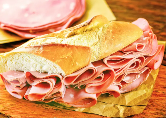 イタリアンスタイルのボローニャハム。厳選された豚もも肉と牛肉を使用し、数種類のスパイスで香り高い製品に仕上げています。