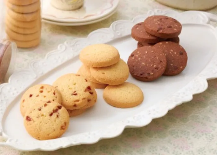 チョコチップとアーモンド入りの生地をさくっと軽い食感に焼き上げました。